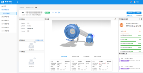 WitExpert工業(yè)設(shè)備預(yù)測性維護系統(tǒng)由硬件和軟件兩部分組成,從傳感器、邊緣計算網(wǎng)關(guān),再到軟件平臺都是Witium團隊自主研發(fā)。系統(tǒng)依托先進的物聯(lián)網(wǎng)工業(yè)AIoT技術(shù),用MEMS三軸振動傳感器采集設(shè)備的振動數(shù)據(jù)及特征參數(shù)(如振動加速度、速度、溫度等),計算并存儲設(shè)備的運行參數(shù),自動生成日數(shù)據(jù)庫、歷史數(shù)據(jù)庫及報警庫。通過振動機器學(xué)習(xí)算法,將特征參數(shù)值與模型閾值進行比較,來確定設(shè)備當(dāng)前是處于正常還是故障狀態(tài),邊緣計算網(wǎng)關(guān)根據(jù)設(shè)備故障預(yù)測性維護診斷模型分析計算,一旦出現(xiàn)異?;蛘吖收希谝粫r報警通知運行管理人員,實現(xiàn)振動預(yù)測性維護。幫助用戶查找產(chǎn)生故障的原因,識別、判斷故障的嚴(yán)重程度,為科學(xué)檢修提供指導(dǎo),切實提高工廠的安全管理水平,促進工業(yè)企業(yè)實現(xiàn)數(shù)字化、智能化轉(zhuǎn)型。